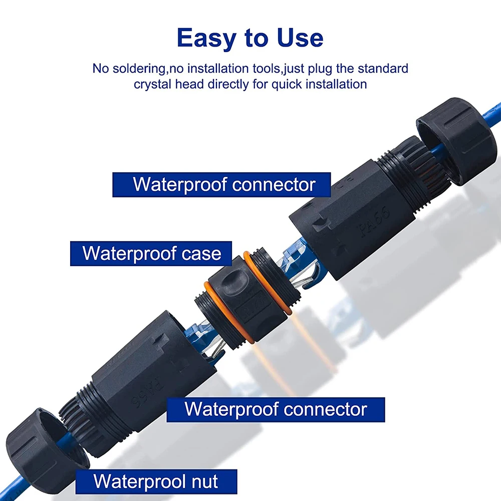 【Easy Installation】 Hoolnx RJ45 Waterproof Field Installable Coupler female to female, no soldering, no installation tools,Just plug the standard modular plug directly for quick installation without tools.